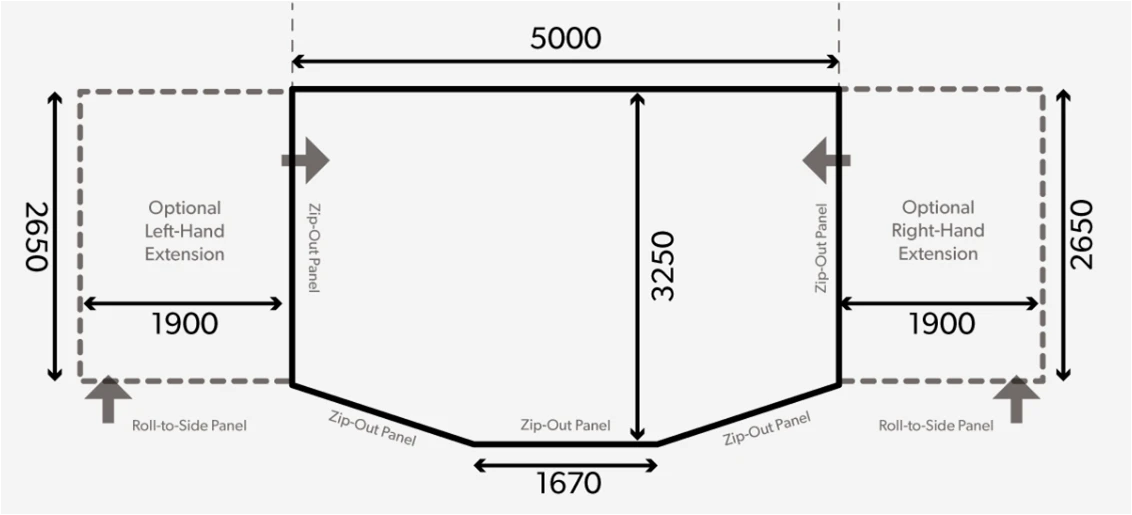 Dual-Pitch Roof increases headroom, ensures effective wind deflection and sheds rain water.