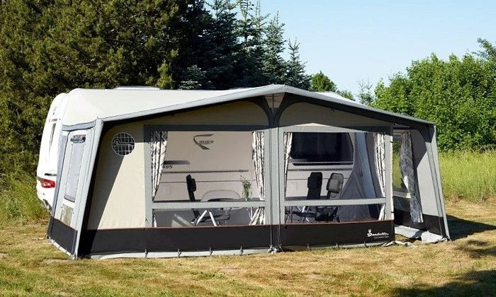 Its depth of 3 metres and the choice of three types of frames are a major advantage, especially for those who alternate between permanent pitching and touring and enjoy having plenty of space in the awning.