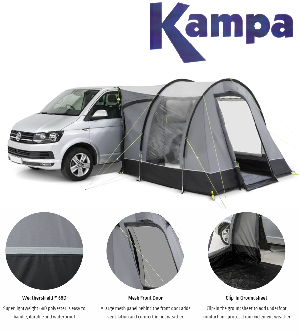 The Kampa Trip VW guarantees a fast set-up and take-down, even when touring solo.