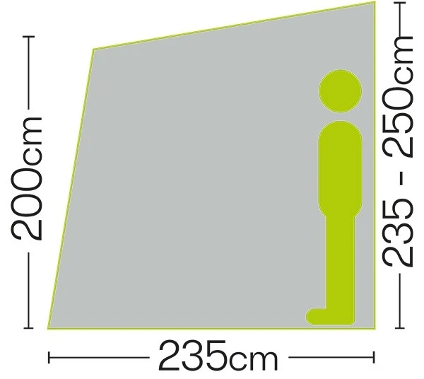 This awning has the minimal quick-fit frame system. This means it uses the minimal amount of poles making it smaller and easier to use. The frame is also adjustable. This is extremely useful when you pitch on uneven ground. Thanks to its adjustable nature it can be extended or shrunk to cater for uneven ground, slopes or obstacles which you can find on a large number of pitches, helping you to pitch correctly at all times.