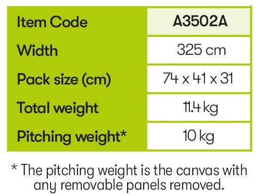 The Falcon Air range has a roll up front panel that can be used as a canopy when used in conjunction with steel canopy poles.